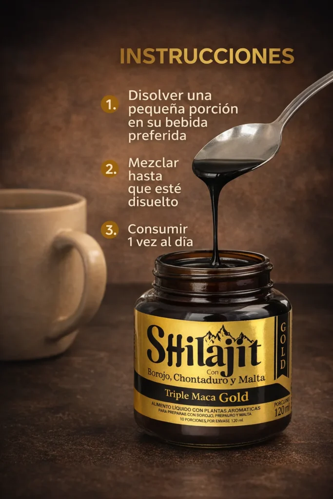 Su fórmula combina Shilajit puro del Himalaya con triple maca y borojó